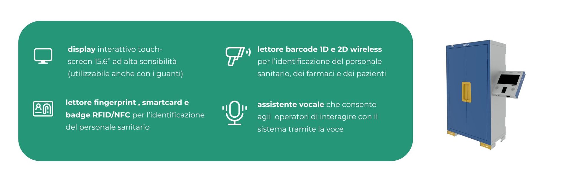 FIDROK è l’armadio intelligente che consente la razionalizzazione e il controllo delle attività logistiche dei farmaci in reparto.
